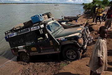 During our long wait for the tide, we prepared the landing bank on the Mozambique side to make offloading the other vehicles much easier, played football with the locals and took lots of photos. While waiting, We also decided to drive the 4km’s to the Mozambican border post to see if we could save any time by getting everyone’s passports stamped. The road was very bad as no vehicles had travelled it and literally 100 meters from the riverbank we got the Land Rover stuck the in a mud hole. With that, we suddenly had twenty or thirty ‘helpers’ ready to push us out, but they all wanted a 100 dollars and we tried to explain to them that they had all just been given a brand new football each! The 'helpers' were not interested and wandered off leaving us to dig and winch the Landy out.